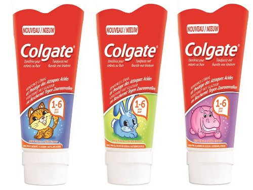 - Colgate Smiles, un excellent départ pour une vie de sourires éclatants de santé. Ce dentifrice a été spécialement développé pour les dents de lait des enfants. Utilisez une quantité de dentifrice de la taille d'un petit pois une à deux fois par jour afin d'apporter la quantité quotidienne de fluor adaptée aux enfants de 1 à 6 ans.