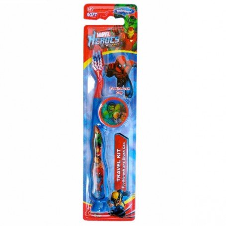 Brosse à dents Spiderman, munie d'une ventouse qui permet de tenir debout et d'un capuchon pour une meilleure hygiène.