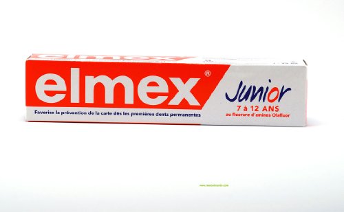ELMEX DENTIFRICE JUNIORSoin dentaire - 75mlPROPRIÉTÉS : 75ml - Dentifrice enfantLe dentifrice ELMEX DENTIFRICE JUNIOR assure une bonne hygiène dentaire pour vos enfants. Il renforce l'émail de leurs dents et protège contre les caries.ELMEX DENTIFRICE JUNIOR favorise la prévention de la carie et la reminéralisation de l'émail dentaire.CONSEILS D'UTILISATION :Pour enfant de 7 à 12 ans Brossez-vous les dents après chaque repas. ELMEX DENTIFRICE JUNIOR est déconseillé chez l'enfant de moins de 6 ans car il contient un dérivé fluoré.COMPOSITION :Fluorure d'amines olafluor 1400 ppm F, excipients qsp 100 %. Aqua, sorbitol, hydrated silica, polyethylene, hydroxyethylcellulose, olafluor, titanium dioxide, aroma, limonene, saccharin.