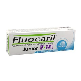 Le dentifrice Fluocaril Junior 7-12 ans est spécialement conçu pour les enfants de 7 à 12 ans : sa teneur en fluor (1500 ppm) favorise la prévention des caries en renforçant l'émail fragile des premières dents définitives.Sa base nettoyante douce respecte l'émail et les gencives des enfants. Il contient un dérivé fluoré.Arôme Bubble Gum ou Fruits Rouges.