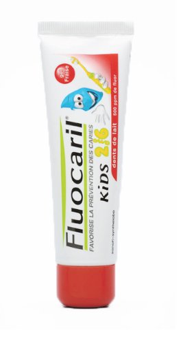 Le dentifrice Fluocaril Kids 2-6 ans est spécialement conçu pour les enfants de 2 à 6 ans : sa teneur en fluor (500 ppm) favorise la prévention des caries et est compatible avec l'ingestion régulière de comprimés fluorés.Sa base nettoyante douce respecte l'émail et les gencives des enfants. Il contient un dérivé fluoré.Arôme Fraise.