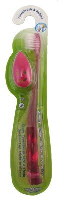 Smiley Brosse à dents et porte-brosse à dents Junior - Idéal pour chez soi ou en voyage - Avec ventouse pour l'accrocher au miroir
